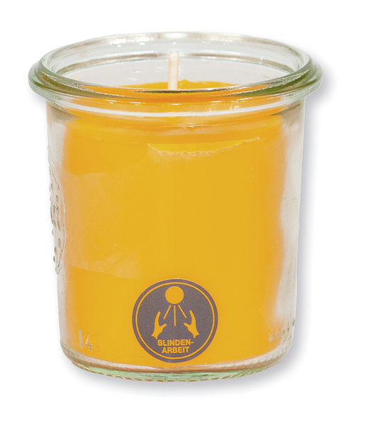 In unserem Kerzenatelier stellen unsere blinden und sehbehinderten MitarbeiterInnen Stumpenkerzen in drei verschiedenen Größen und Farben, mit und ohne Duft her. Zur Sommerzeit die Citronella (Anti-Mücken-Kerze), wie auch in der kälteren Jahreszeit winterlich duftende Kerzen, sind ein fester Bestandteil ihres täglichen Schaffens. Unsere Kerzen werden aus reinem Rapswachs hergestellt und enthalten keinerlei Erd- oder Palmöl Rohstoffe, wie es bei vielen handelsüblichen Kerzen der Fall ist.
